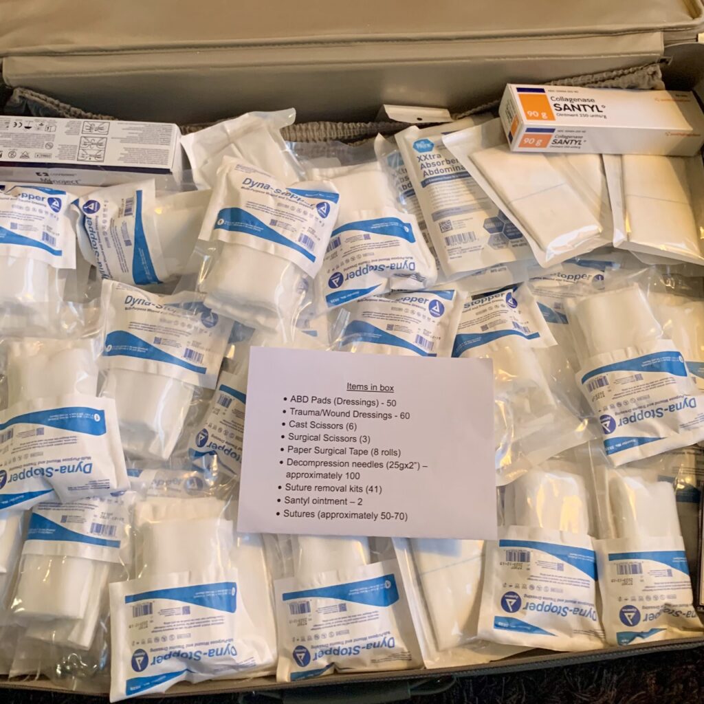 $50 will buy 2 Combat Application Tourniquets (CATs). These have saved thousands of lives in-country. It’s important we take only approved tourniquets as poor-quality alternatives can be deadly. Hemostatic bandages are valuable because they stop life-threatening bleeding quickly, especially in situations where medical care is delayed or limited. They’re considered a core lifesaving item in trauma kits, ambulances, and humanitarian convoys. DUST also sources sterile wipes, compression needles, stretchers, any and all medical supplies that can be put to good use.