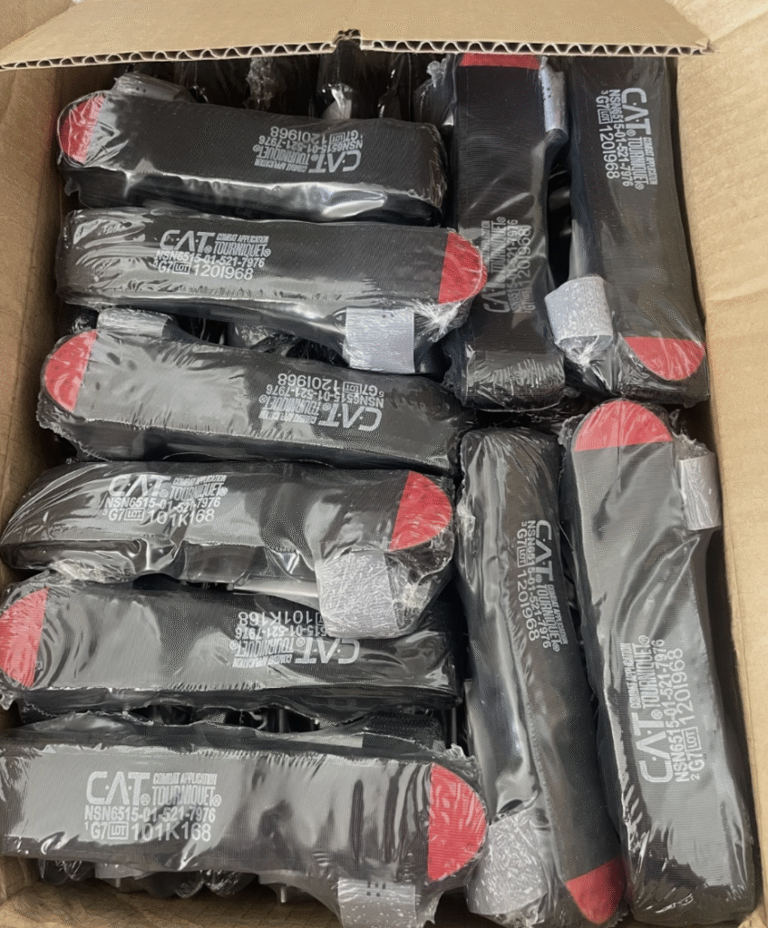 • Combat Application Tourniquets (CAT Gen-7, verified genuine): Can be applied one-handed by a wounded soldier. Counterfeits are common and can kill; we only source from verified suppliers.